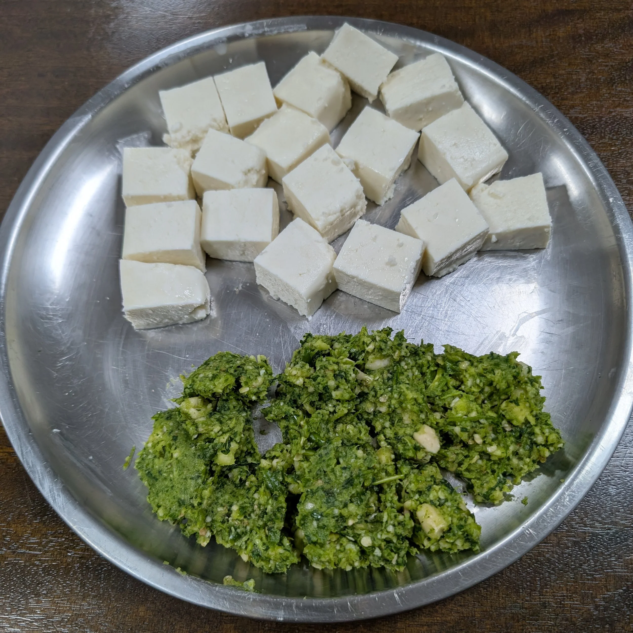 Cut the paneer into square cubes.